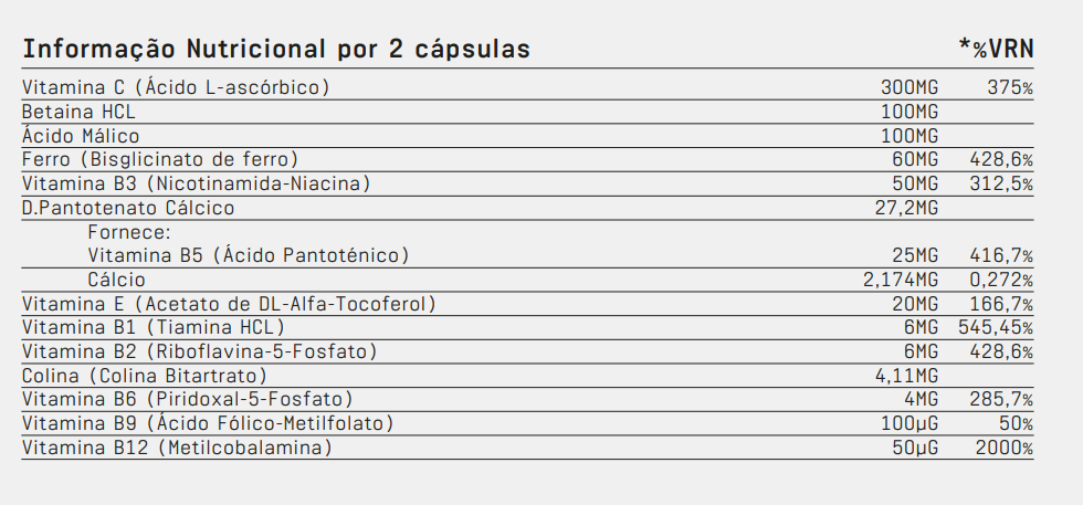 Esta fórmula de excelente biodisponibilidade, apresenta-se em forma de cápsula, com um mínimo de sabor metálico.